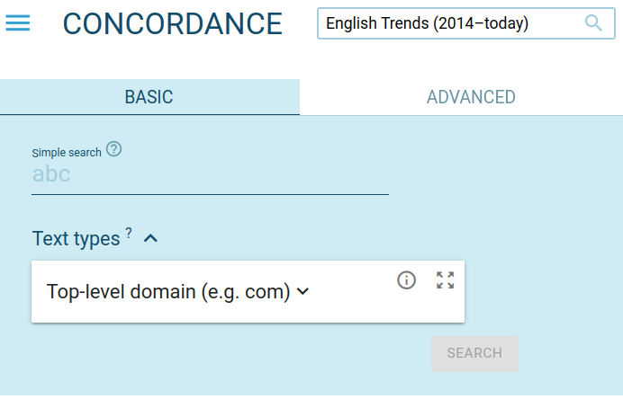 To access the Corpus configuration, click DASHBOARD – MANAGE CORPUS – Configure – Expert settings – Corpus configuration.
