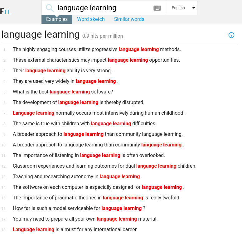 SKELL finds good examples of the word or phrase useful for language learners.