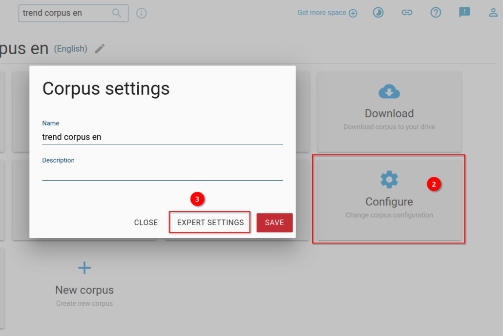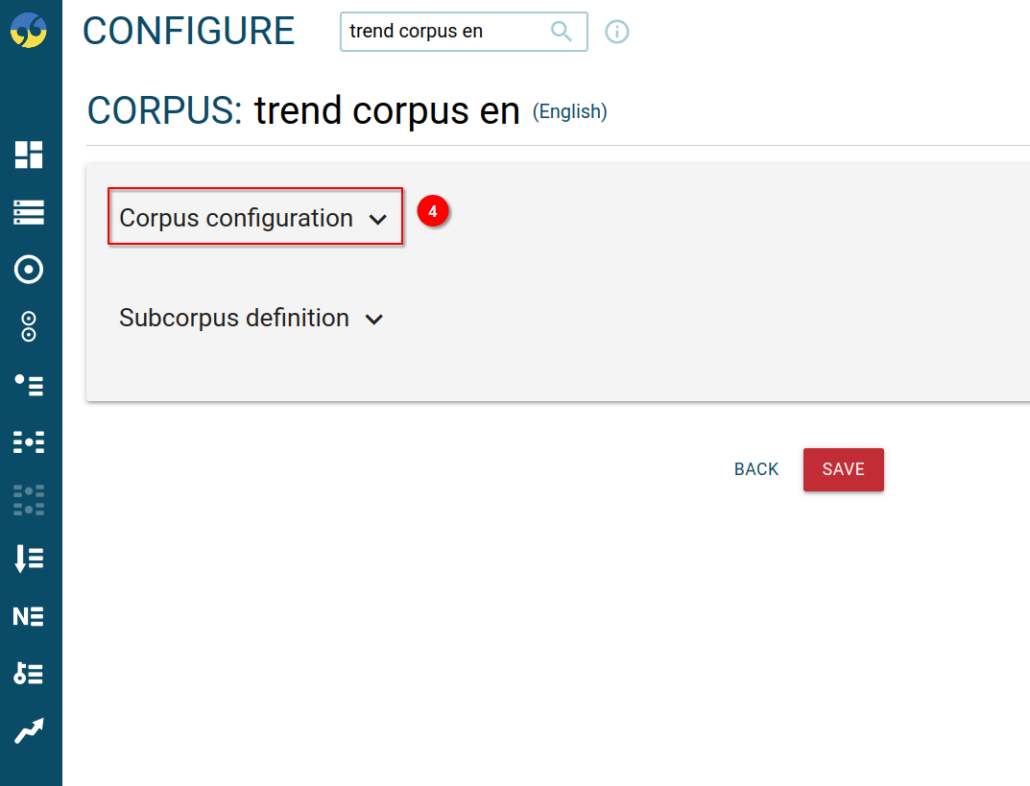 Step 4: Click on Corpus configuration