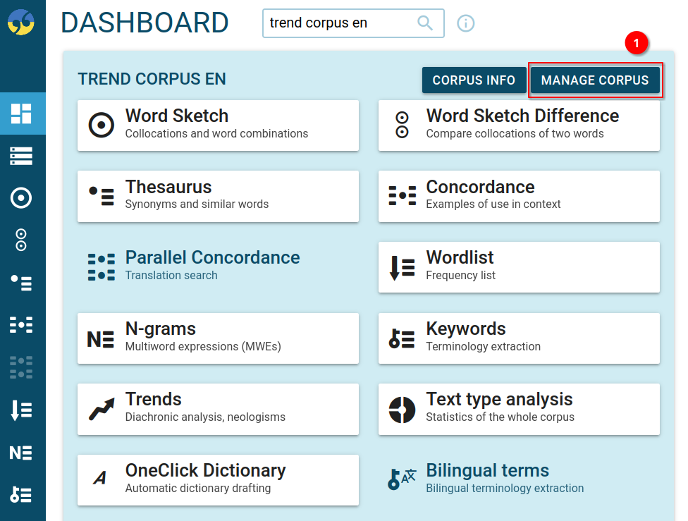 Step 1: Click on Manage corpus