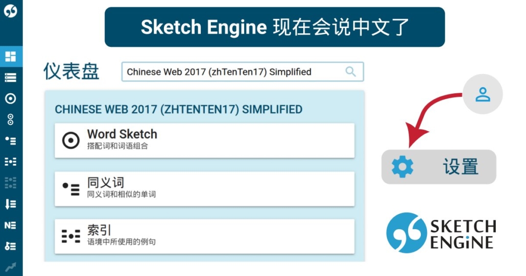 Sketch Engine now speaks Chinese! We’re excited to announce that our interface is now available in Chinese. A huge thanks to Liang-Ting Juan from Palacky University in Olomouc for her excellent translation work.