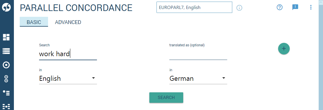 After selecting the corpus, click Parallel concordance on the corpus dashboard.
