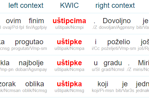 - word sketch – Bosnian collocations categorized by grammatical relations